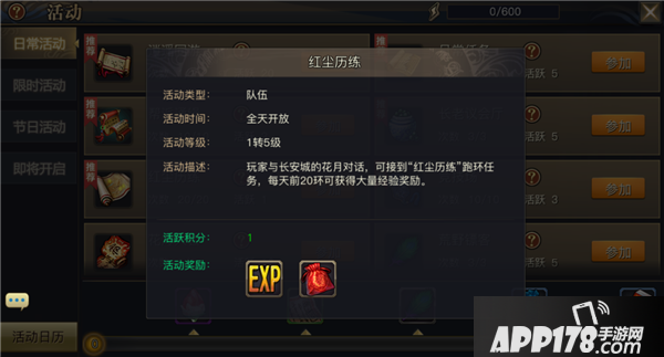 4、参加红尘历练,如果运气好,还能在任务中随机获得红尘礼袋惊喜,每天一定要记得参加。