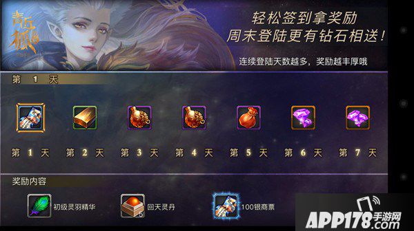 《青丘狐传说》手游每日登陆奖励中,玩家只需要每天登陆游戏就可以领取相对应的奖励。奖励中包括大量的银两、绑定钻石、洗炼石、宝石等。玩家可以很轻而易举的获得这些奖励!
