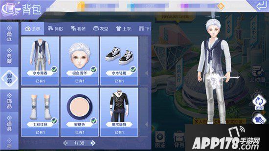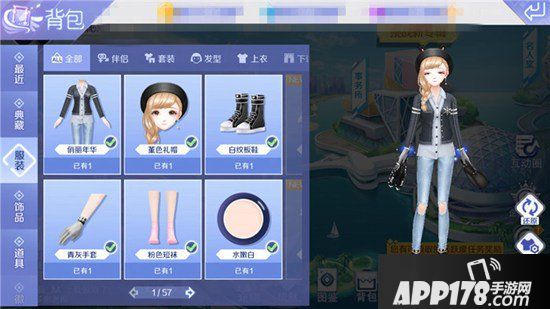 通过连续登陆新版本游戏,女生们可以获得的装扮是:“堇色礼帽”发型、“俏丽年华”套装、“堇色短履”鞋子与“度角安年”手持。这套装扮也是休闲风的穿搭,金色的辫子放在肩膀一侧,搭配黑色的礼帽,优雅恬静;上装为银白色衬衫搭配灰黑色的开衫,多了些许学院风。下装为破洞牛仔裤,如此时尚的造型搭配一双板鞋是再合适不过的了!