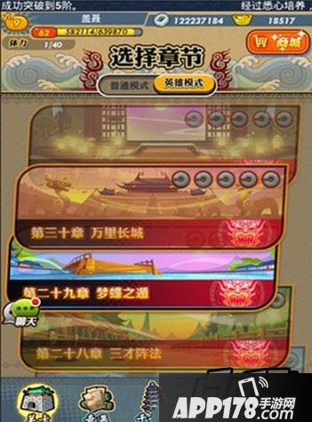 英雄关卡类似于副本,又比副本挑战性更大,通关需要体力,完成指定成就通关后可获得相应奖励。 首先,普通模式的关卡越高,那么英雄模式的关卡章节也越高。英雄关卡每天有一次免费挑战的机会,每次挑战都需要10体力,需要提醒小伙伴一点,通关失败也是会扣除体力哒~