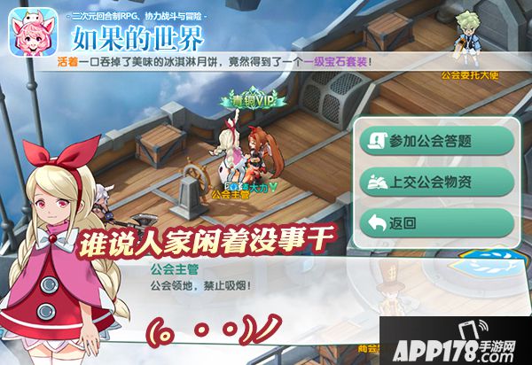 公会主管闲着没事,就喜欢出题考(tiao)察(xi)冒险家们~~只要进入公会领地参加答题即可获得公会物资以及经验奖励。米娜桑不要害怕,题目也是超逗比~像“1+1=?”这种送分题我会乱说?