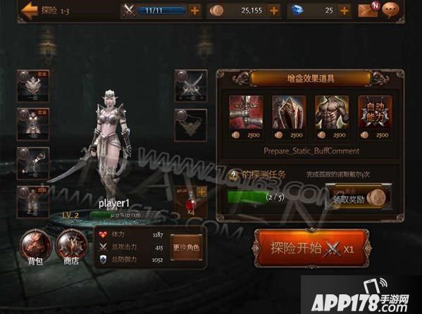 在准备界面中,玩家可以查看自己的各项战斗数值、更换装备以及购买增益道具使自己在战斗中能力增强。