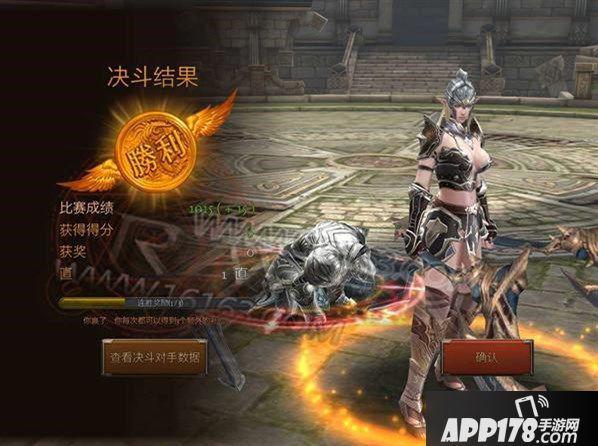 决斗后将显示决斗结果,胜利后将获得决斗场积分用于每个赛季的排名结算,对应排名能够领取的奖励程度也有区别。