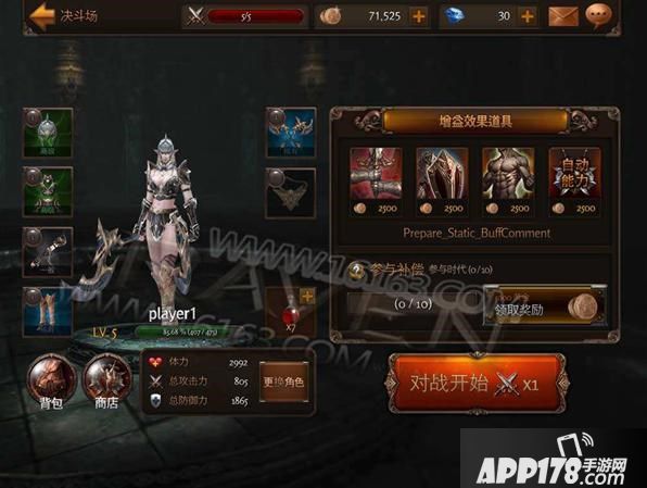 接着将进行决斗场战斗准备,在这个界面玩家也可选择对应的增益道具购买,来强化自己的战斗力。