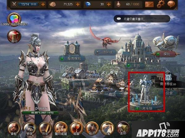 首先我们需要在主界面中选择“决斗场”图标: