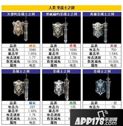 圣战士之剑携带电击属性攻击,高防御、低伤害是这个武器的特点,适合肉盾流玩家使用。是刷图玩家的首选武器。