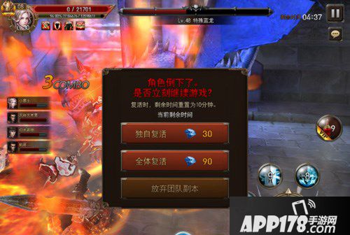 当你花钻石点击复活后,你会发现除了有几秒钟的无敌时间外,最主要的是讨伐时间会恢复成10分钟,相信再有10分钟你总能通关boss了吧?什么?还打不过?那就再死几次。。。PS:虽然是48级的,但是好好打不复活,规定时间我是能打过的哦,so,某位大神,赔我30钻石表演费。。。。