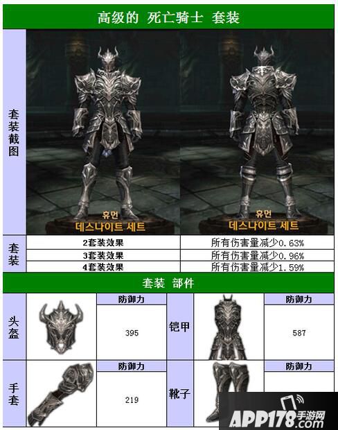 以上就是raven掠夺者人族高级死亡骑士套装属性图鉴的全部内容,希望能给喜欢高级死亡骑士套装的小伙伴们带来帮助。更多相关攻略稍后送上~请继续关注APP178手游网~更多精彩期待你的分享~