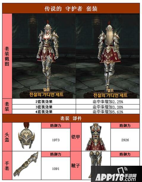 以上就是raven掠夺者精灵传说守护者套装属性图鉴的全部内容,希望能给喜欢传说守护者套装的小伙伴们带来帮助。更 多相关攻略稍后送上~请继续关注APP178手游网~更多精彩期待你的分享~