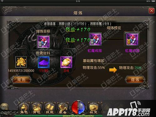 APP178手游网>热血传奇手机版>游戏攻略>虹魔戒指白银熔炼到黄金材料及属性提升