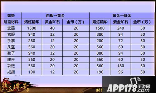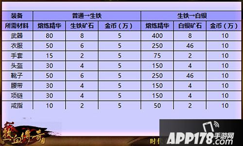 APP178手游网>热血传奇手机版>游戏攻略>装备各部件熔炼需求材料数量一览
