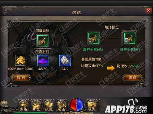 APP178手游网>热血传奇手机版>游戏攻略>凝神手套从生铁升级到白银需要多少材料?