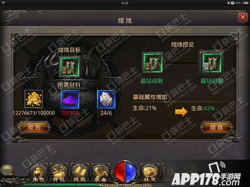 APP178手游网>热血传奇手机版>游戏攻略>晶钻战靴从生铁升级到白银需要多少材料?