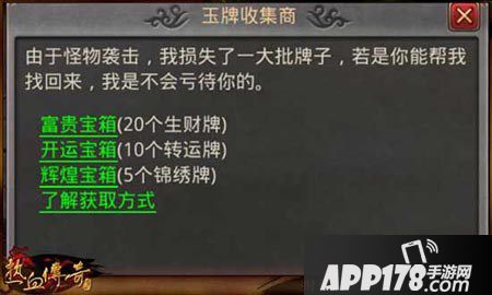 APP178手游网>热血传奇手机版>游戏攻略>玉牌收藏家在哪里?玉牌在哪里兑换宝箱?