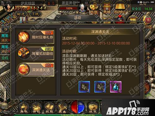 APP178手游网>热血传奇手机版>游戏攻略>混乱深渊通关送好礼 可获得黑铁石祝福油