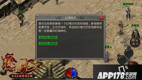 进入:当央服开启之后,玩家可以通过盟重NPC环境老兵传送到央服准备地图中,通过央服准备地图中的NPC进入战场地图。