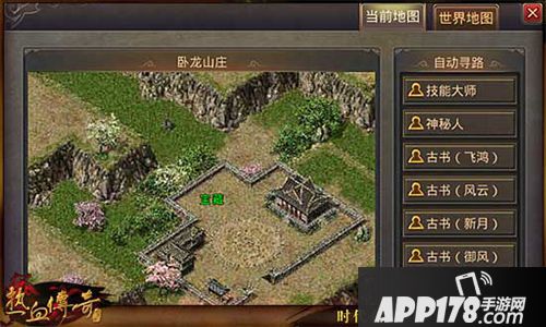 经由盟重地图的【卧龙笔记】传送至卧龙山庄,点开卧龙山庄地图,点击【宝藏】即可自动寻路处卧龙山庄宝藏所在区域,宝藏位于卧龙山庄最西侧,该地图为激情区,为了控制资源不外流,卧龙庄主和火龙任务刷新的时候这里还是各大行会的必争之地。