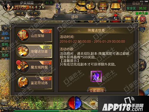 APP178手游网>热血传奇手机版>游戏攻略>降魔洞窟送惊喜送福利 额外获得500精魄