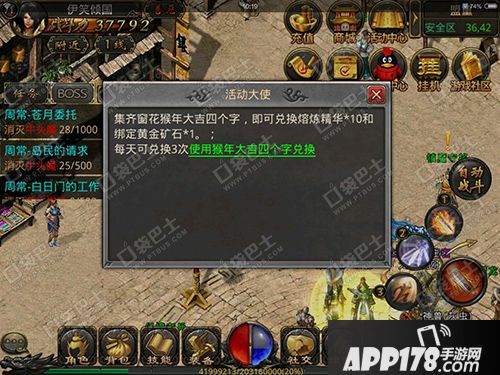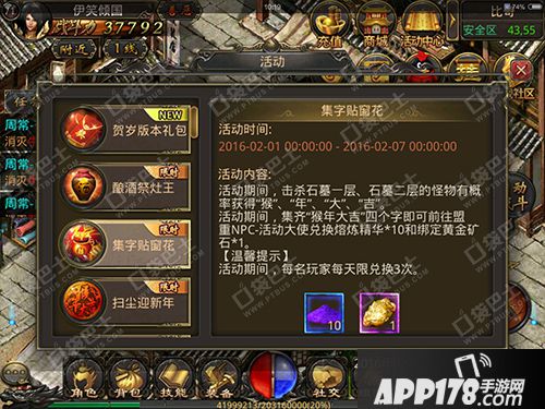 APP178手游网>热血传奇手机版>游戏攻略>集字帖窗花 猴年大吉换熔炼精华与金矿