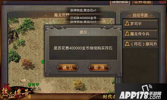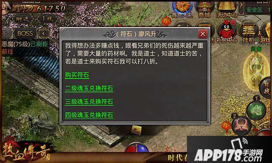在魔龙荒野、白日门等地图中,找到NPC(符石)廖风升,玩家可花费金币在廖风升处购买符石。购买1个符石需要50万金币(道士8折),购买所得的一级符石种类随机,每日最多可购买5次。
