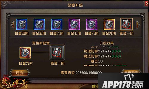3、勋章等级:提升勋章等级可以提升角色的战斗力,勋章等级越高,为角色提供的战斗力加成越多。