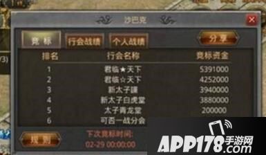 新区首次抢沙规则,通过竞标行会资金前三的行会行会才能参与抢沙资格,一般情况都是2打1,没有绝对的实力尽量搞分会或者同盟一起进去前三,不然让对手进去2个资格就会很被动,抢沙主要靠前期准备,提前1天联系联盟和其他行会找稳定有时间打沙巴克的玩家加入,自己会没时间的让他们先去分会,保证抢沙巴克的在线率。