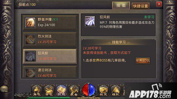 游戏中,战士的角色技能以近身战斗为主,攻杀剑术、半月弯刀、刺杀剑术、野蛮冲撞、烈火剑法、狂风斩、逐日剑法七大技能构成了战士强大的技能体系。随着玩家在游戏中使用某几个技能与敌人作战,会增加该技能的熟练程度,使得技能的威力越来越强。玩家通过任务、杀怪等方式提升自身等级,随着等级的提升就可以学习新的技能。在七大技能中,战士主要带来大量的物理攻击,总是能够让面前的敌人猝不及防。