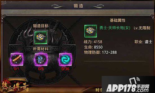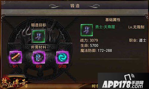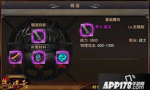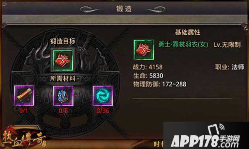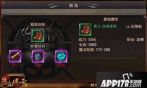 APP178手游网>热血传奇手机版>游戏攻略>职业勇士档装备属性信息介绍 神装锻造详解