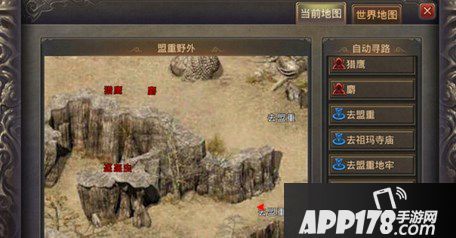 3、到盟重野外以后,就会在自动寻路里面看见有一个去红名村。