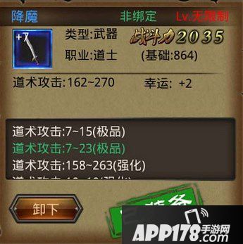在《热血传奇》手机版中,武器装备都会有属性区间,最小值和最大值。大家可以直接在人物界面看到装备的属性信息。使用祝福油后,在当前装备属性中会显示幸运值。幸运值越高,在攻击时武器的攻击数值会更多趋于最大值。以道士的降魔武器为例,提供的道术攻击为162-270,那么拥有高幸运值玩家的攻击数值达到270的概率越大,而低幸运值较低的玩家攻击是162-270之间随机值,伤害输出不稳定。