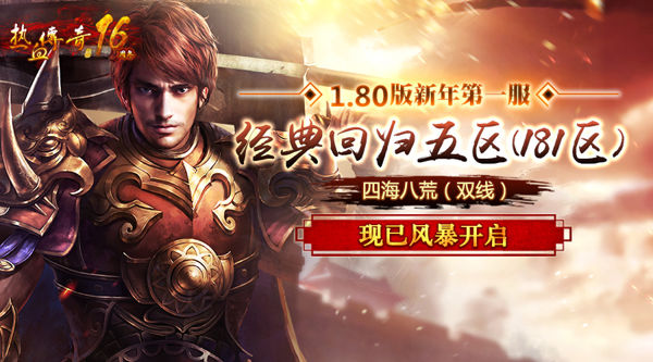 2017继往开来!传奇旗舰网游《热血传奇》1.80版开年第一服“经典回归五区(181区)”现已风暴开区!早在新区预注册开放之始,181区就显示出了强劲的人气!1.80英雄合击版不愧是传奇经典版本之一,强大的号召力吸引了全国无数的传奇忠粉!回首16年传奇辉煌,那是传奇人共同的青春,玛法大陆到处都是我们奋斗过的足迹!