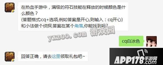 热血传奇5月25每日一题答案:cq白冰色