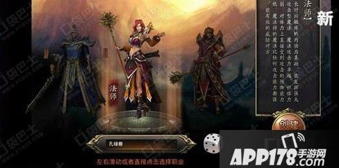 玩友们决定使用哪个职业,可左右滑动选择职业,使用筛子取名字或手动输入名字,都是可以的,这些都搞定之后,就可以点击右侧按钮,进行角色创建了。