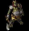 半兽战士 一般半兽人有30年的寿命,但有一种半兽人的生命可长达50-200年。如果半兽人活过50年的话,它的皮肤会变成墨绿色(没有人知道为什么)。半兽战士已经生存了相当长的时间,因此有着更丰富的战斗经验和更强大的战斗力。它把食用过的动物的骨头作为武器。 |