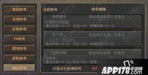 APP178手游网>热血传奇手机版>游戏攻略>热血传奇手机版称号大全 所有称号加成详解