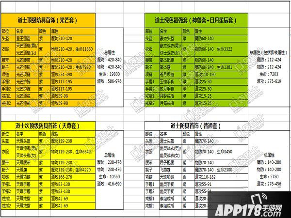 APP178手游网>热血传奇手机版>游戏攻略>道士装备属性详细一览 道士50级紫装搭配