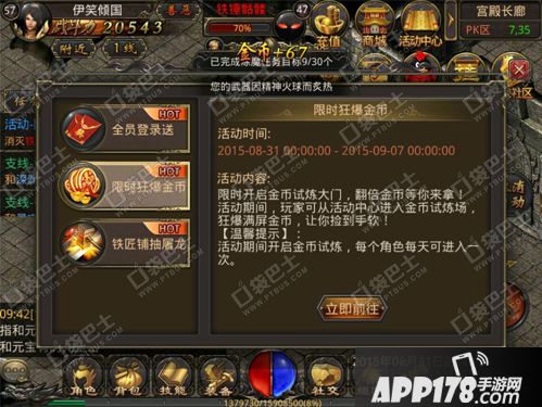 APP178手游网>热血传奇手机版>游戏攻略>金币滚滚来 限时活动金币试炼捡钱捡到手软