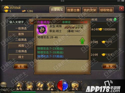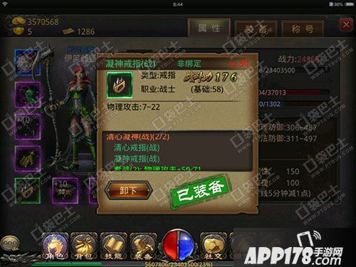 APP178手游网>热血传奇手机版>游戏攻略>紫装好还是套装好 战士力量戒指与清新凝神