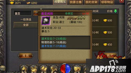 介绍完武器,下面来介绍首饰,首饰里面带暴击属性的有项链和戒指,咱们先来介绍一下戒指,如图盖亚戒指对应的是道士,道术攻击20—33、暴击5;战士对应的是残忍戒指,物理攻击20—33、暴击5;法师对应的戒指是孤烟冷,魔法攻击20—33、暴击5;虽然这几种戒指攻击值一般,但凭借着五点的暴击值成为戒指中的新贵,价位远高于祖玛装备,带上后增加的战斗力也是相当可观的,现在很多玩家都选择加暴击的装备了,这应该就是趋势吧。