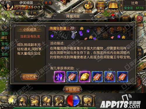 APP178手游网>热血传奇手机版>游戏攻略>降魔洞窟初体验 怪物较强最好组队进行