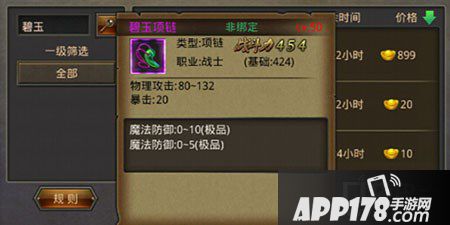 碧玉项链,碧玉项链物理攻击90~132,暴击20。很难找到比这更牛的吗?而且熔炼一出,谁与争锋!