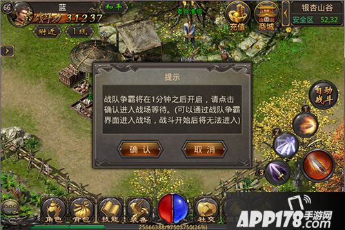 (2) 20:30~20:31分,20:40~20:41分,20:50~20:51分,只要在进入战场的准备阶段,所有已报名战队成员,系统会有一次弹脸提示:”战队争霸赛将在1分钟后开启,请点击参战按钮进入战场等待“,所有可参战