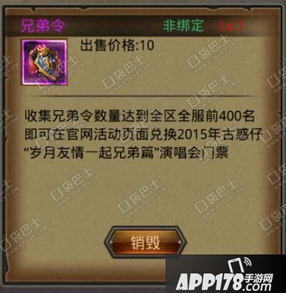 APP178手游网>热血传奇手机版>游戏攻略>兄弟令怎么得到 可兑换古惑仔演唱会门票