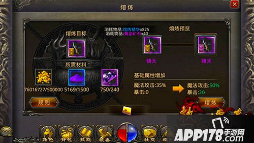 APP178手游网>热血传奇手机版>游戏攻略>数据帝来了 武器熔炼:开天玄天镇天所需材料