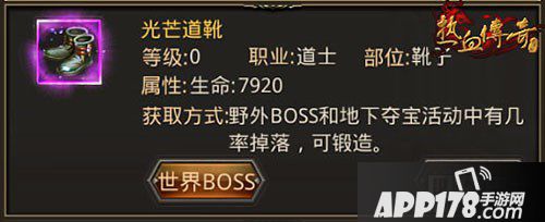 光芒道靴:魔法防御210-420,生命7920。光芒道靴是由20个金刚石锻造而成,也有极小几率从野外BOSS或地下夺宝活动中掉落。