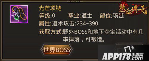 光芒项链:光芒项链提供的道术攻击属性加成是所有饰品中最高的,可以提供的基础道术攻击属性为234-390。光芒项链需要花费12个金刚石锻造,也有一定几率从野外BOSS和地下夺宝活动中掉落。