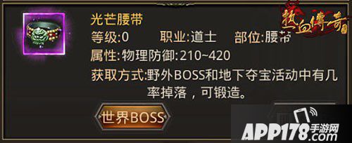 光芒腰带:物理防御属性为210-420。光芒腰带是所有防具配饰中需要花费最多金刚石锻造的一件,需要36个金刚石锻造得出,也有极小几率从野外BOSS或地下夺宝活动中掉落。