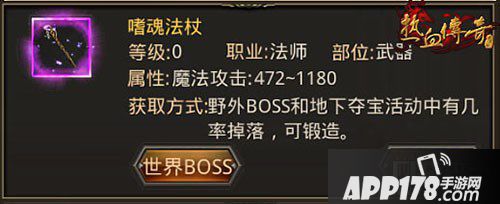 噬魂法杖:噬魂法杖是大RMB玩家的标配装备,需要16个金刚石锻造获得,虽然也说可以通过野外BOSS和地下夺宝活动中获得,但是几率相当之小。噬魂法杖基础魔法攻击属性为472-1180,比骨玉权杖高出了不少。