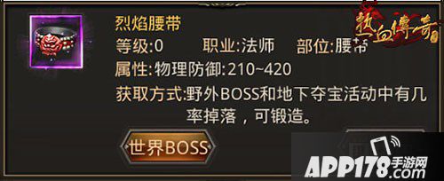 烈焰腰带:物理防御210-420。烈焰腰带需要花费36个金刚石锻造而成,野外BOSS和地下夺宝活动中也有一定几率掉落。