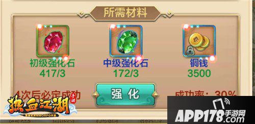 各位《热血江湖手游》的大侠,行走江湖除了一身本领以外什么最重要?当然是装备啦!正所谓巧妇难为无米之炊,一个无敌剑客没有趁手的武器怎么能发挥最大实力,所以当各位大侠自身本领足够强大时,手中的神兵一样可以升星变强!主角达到35级后,会开启装备强化系统,跟随指引,走向变强之路。